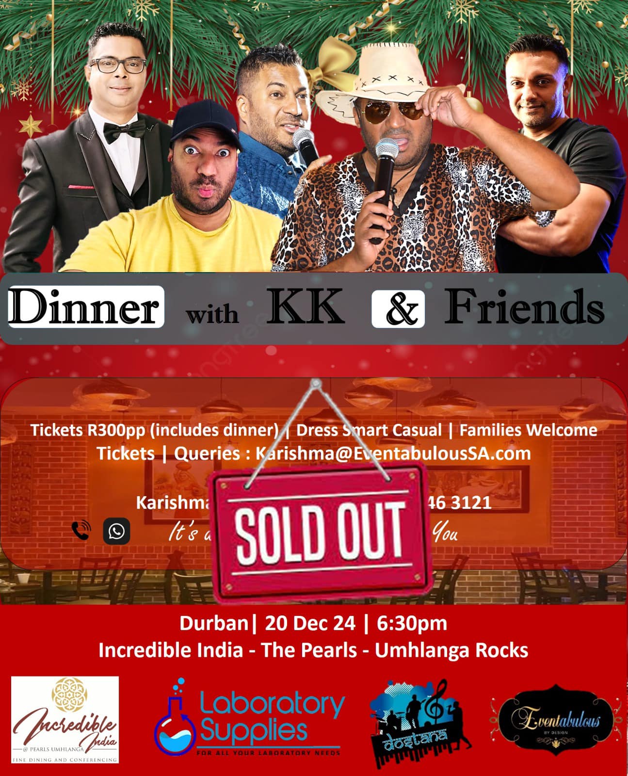 • Sit-down dinner included (R300 per person)